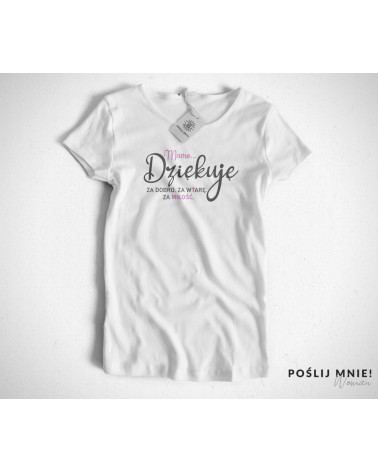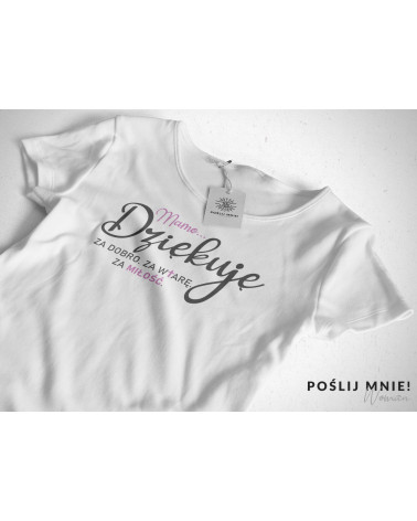 Dostawa w ciągu 2-5 dniThank you The greatest blessing for the child, here on earth, is a loving Mom. On the occasion of her upcoming holiday, we all want to thank our Mothers for their boundless love, for the hardship they have put into our upbringing, for caring for our development in faith and for our daily concern for our well-being. It could be exchanged indefinitely. We will never, ever be able to give back for the amount of help and gifts that our Moms have given us, but a nice gesture will be a gift in the form of a t-shirt with a simple word – thank you.