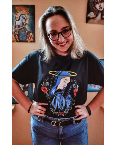 V-shaped trim, neckline finished with 1:1 ribbing knitted fabric, with the addition of 5% elastane, which adds quality to the material. The t-shirt also had a reinforced seam on the shoulders.