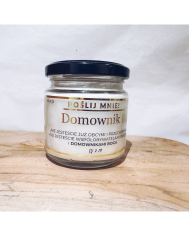 100% soy wax, reusable glass, cotton wick, plaque, black lid of the jar, fragrance composition composed of fragrance and essential oils.