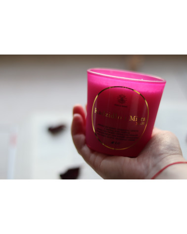 100% soy wax, reusable glass, cotton wick, plaque, black lid of the jar, fragrance composition composed of fragrance and essential oils.