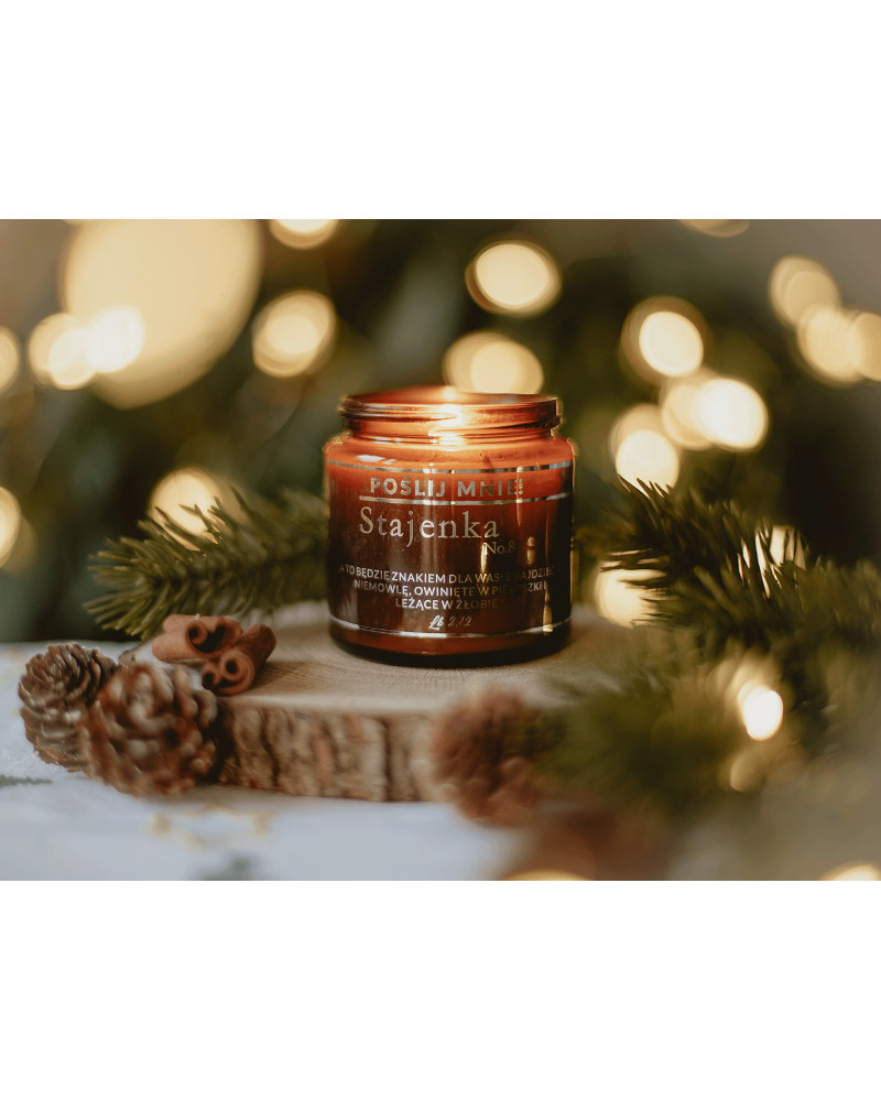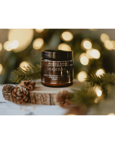 Natural soy candle with a Christmas scent was handmade by our crew.