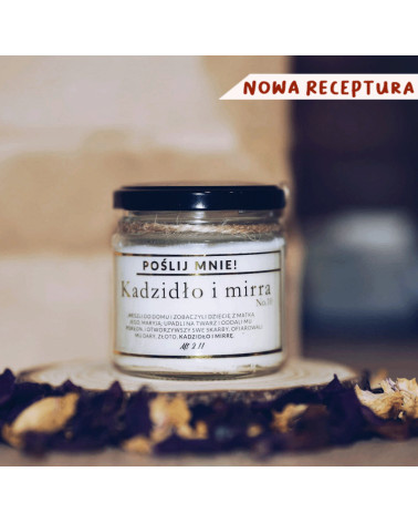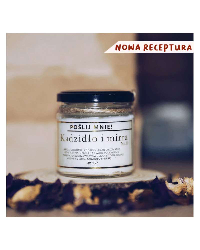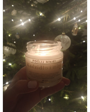 Natural HANDMADE soy candle with the scent of frankincense and myrrh was handmade by our crew.