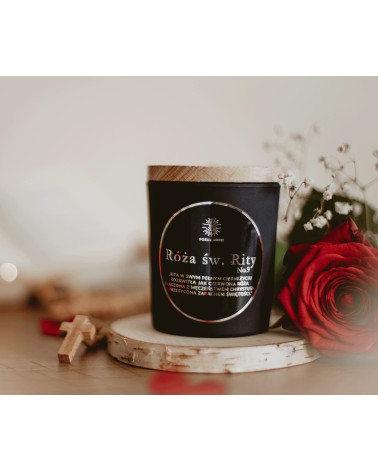 Biblijna Świeca Sojowa PREMIUM (black) "Róża św. Rity"