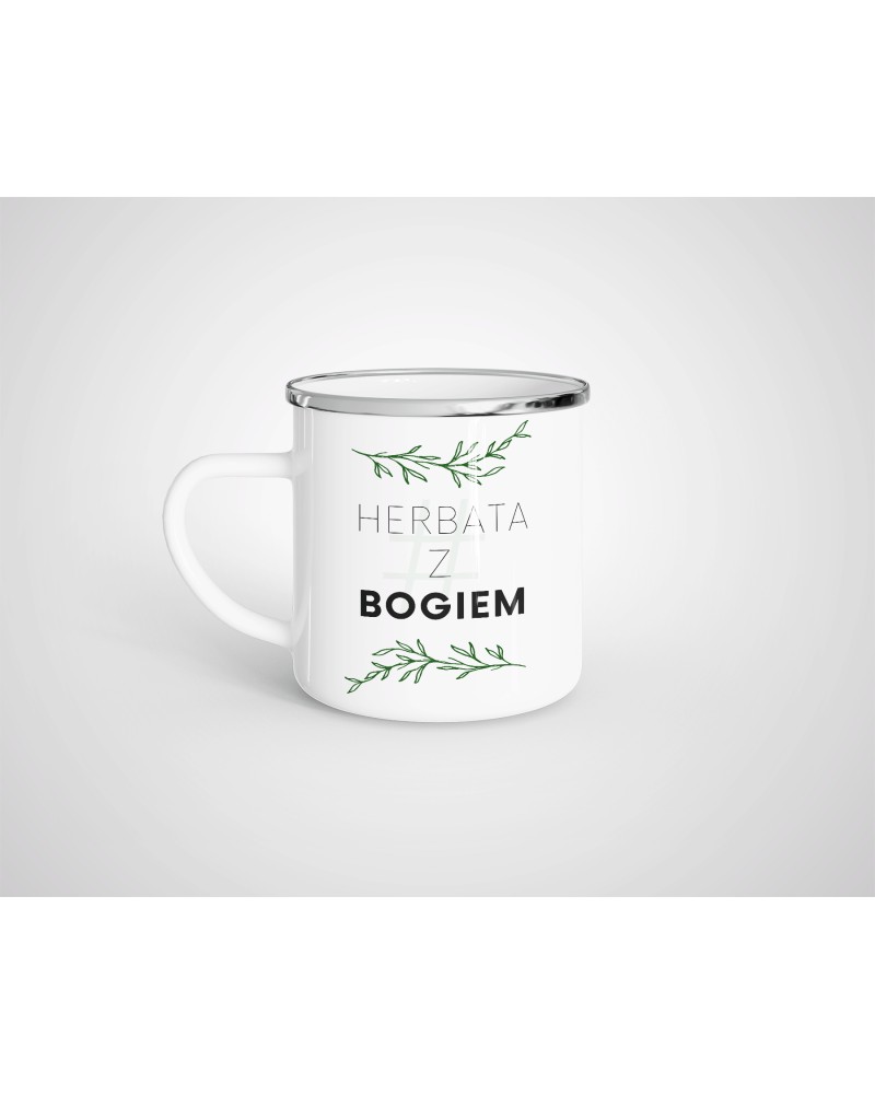Kubek metalowy (emaliowany) - Herbata z Bogiem