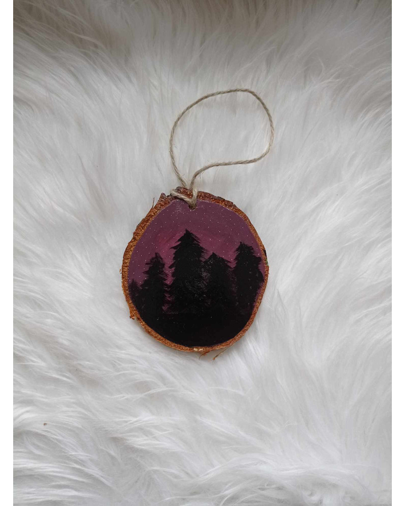 Drewniana Bombka zdobiona ręcznie metodą wypalania. Malowana farbami akrylowymi, oraz konturowana cienkopisem (Ecco Pigment).