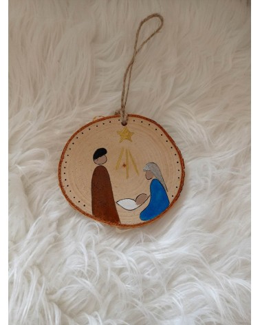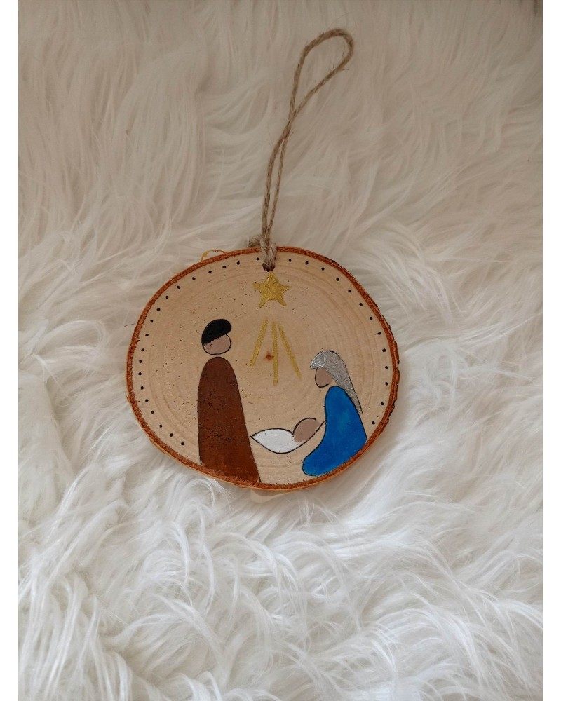 Drewniana Bombka zdobiona ręcznie metodą wypalania. Malowana farbami akrylowymi, oraz konturowana cienkopisem (Ecco Pigment).