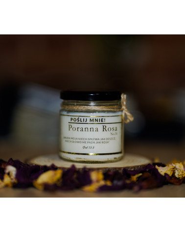 Dostawa w ciągu 1-5 dni roboczych (zależy Ci na szybkiej dostawie? Napisz do nas, może coś zdziałamy!)Naturalna RĘCZNIE ROBIONA świeca sojowa o autorskiej kompozycji zapachowej, z główną nutą porannej rosy, wykonana została ręcznie przez naszą załogę.